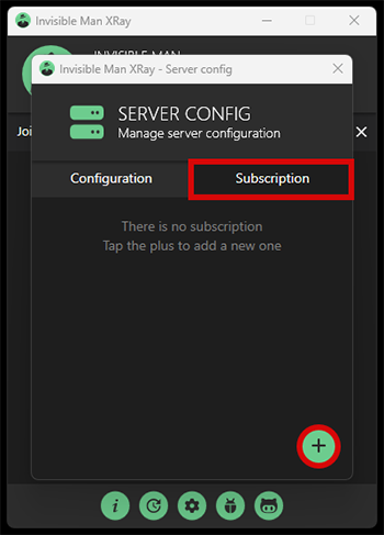 На вкладке “Subscription” нажать на кнопку с плюсом “+”