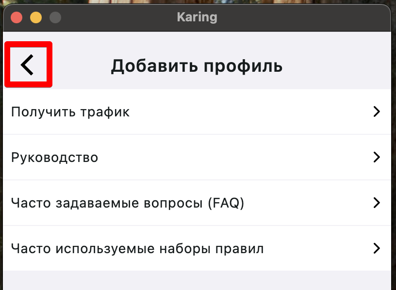- Выйти из раздела “Добавить профиль” нажав на стрелку в левом верхнем углу