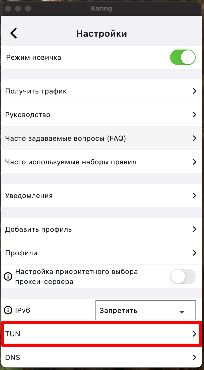 Включение TUN-режима