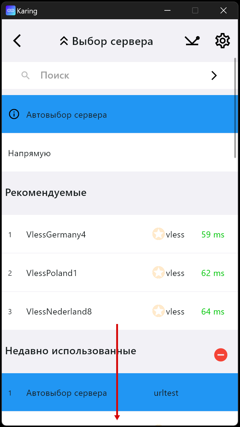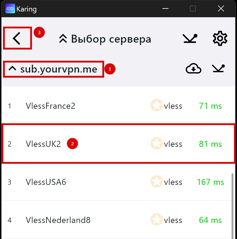 В данном случае приложение самостоятельно выберет сервер для подключения ориентируясь на наименьшее значение пинга среди тех вариантов, которые добавлены в приложение (если ключи добавлены отдельно) или которые есть в подписке (если добавлена подписка)