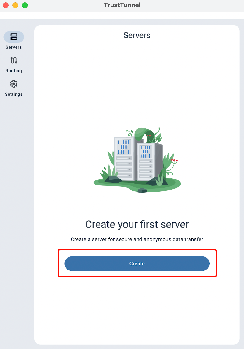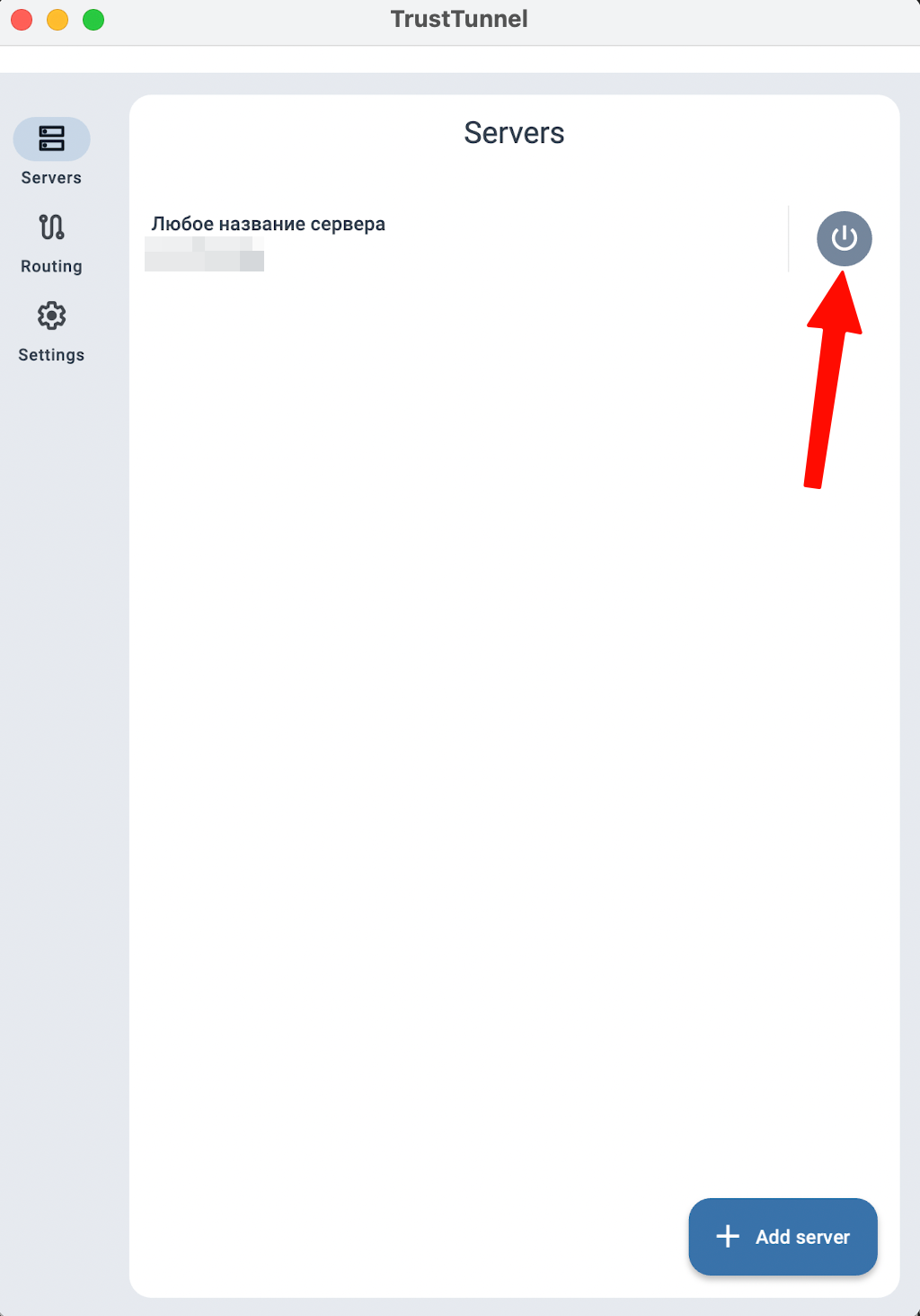 Для подключения к VPN нажать на кнопку включения справа от названия сервера