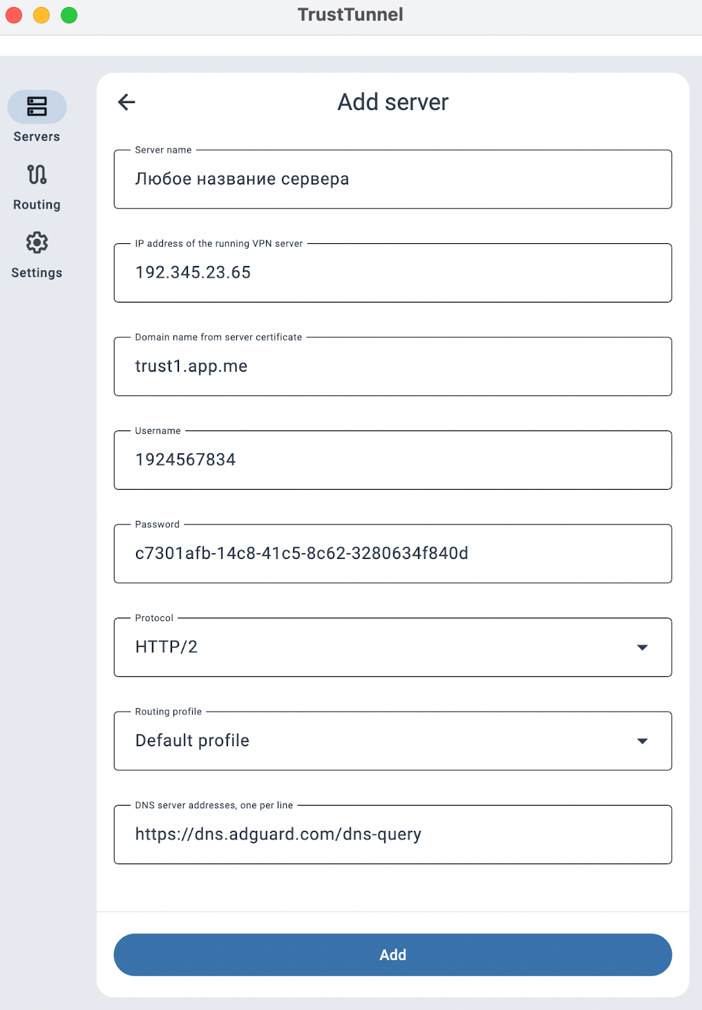 Нажать кнопку “Add”