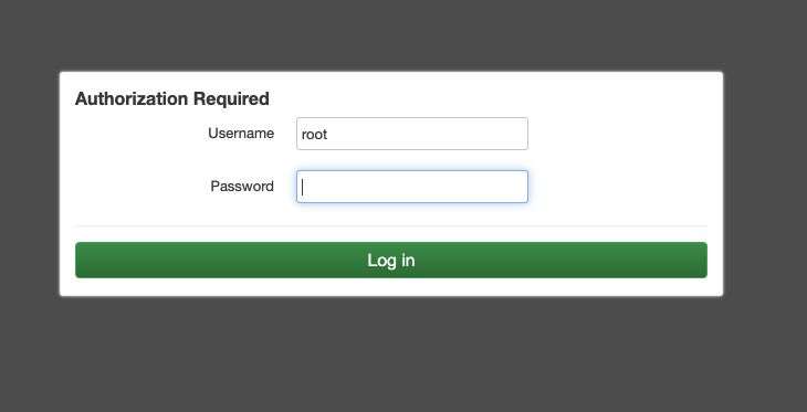 В поля формы авторизации введите Username и Password. Значения по умолчанию: