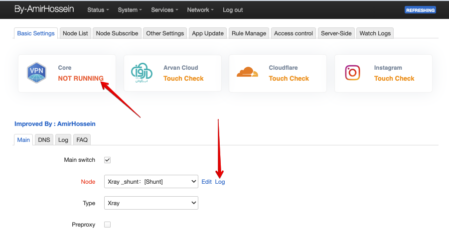 После перезапуска или первого включения ядро может быть не активно. В этом случае нужно внизу страницы нажать на кнопку "Save & Apply" и дождаться запуска ядра