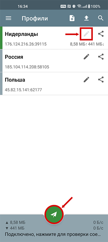 Нажмите на кнопку в виде карандаша рядом с ключом. Если кнопка карандаша неактивна, выключите VPN